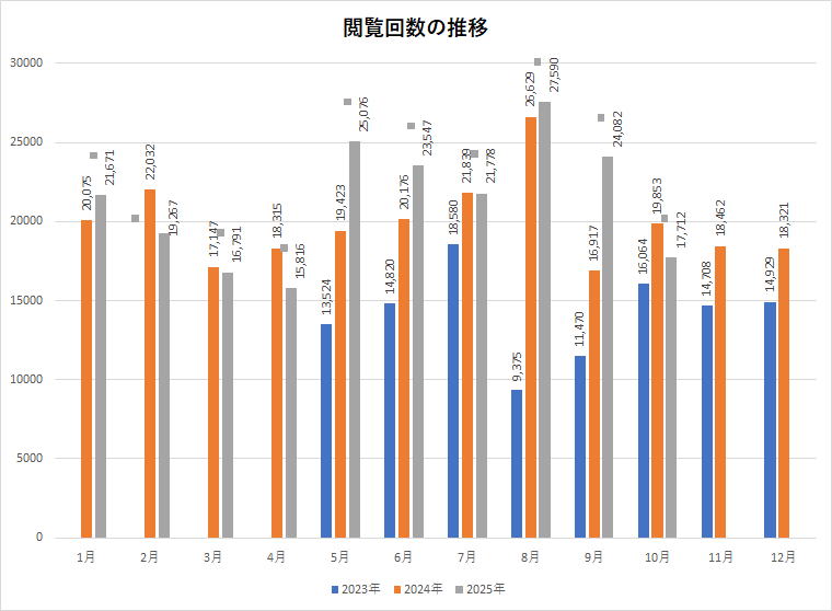 | 2025年 | 21,671 | 19,267 | 16,791 | 15,816 | 25,076 | 23,547 | 21,778 | 27,590 | 24,082 | 17,712 | 213,330 | 21,333 |